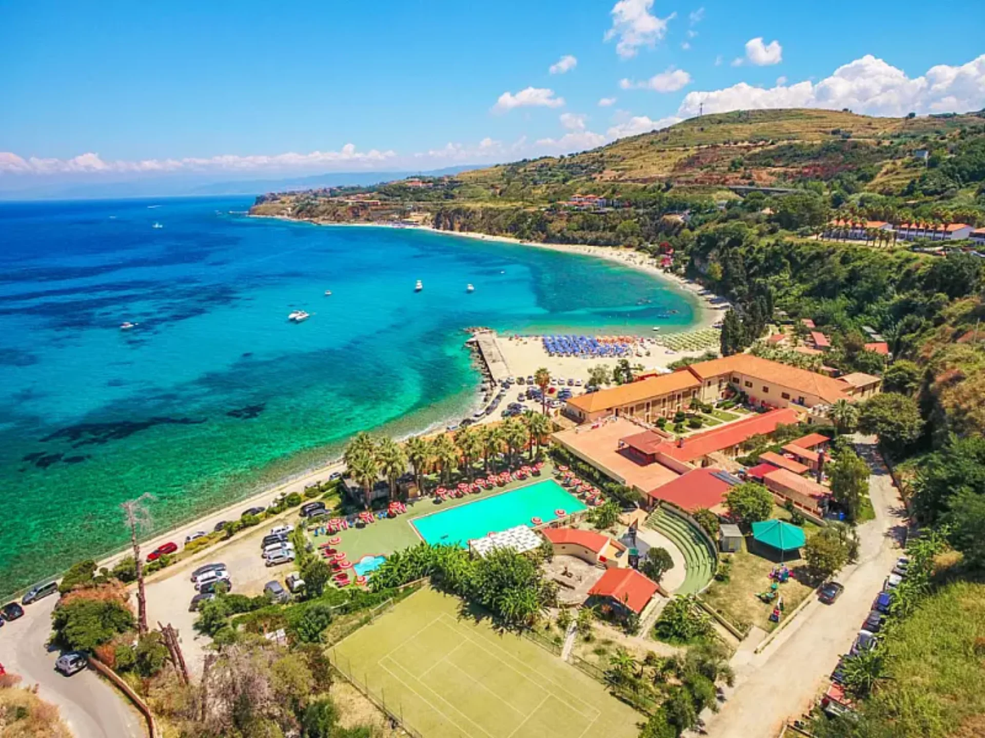 L'Hotel Baia della Rocchetta è immerso in una splendida baia affacciata sul Golfo di Sant'Eufemia, tra paesaggi suggestivi e una spiaggia dorata bagnata da mare limpido. Circondato da ulivi e palme, il villaggio si sviluppa tra ampi spazi verdi e strutture pensate per comfort e divertimento.